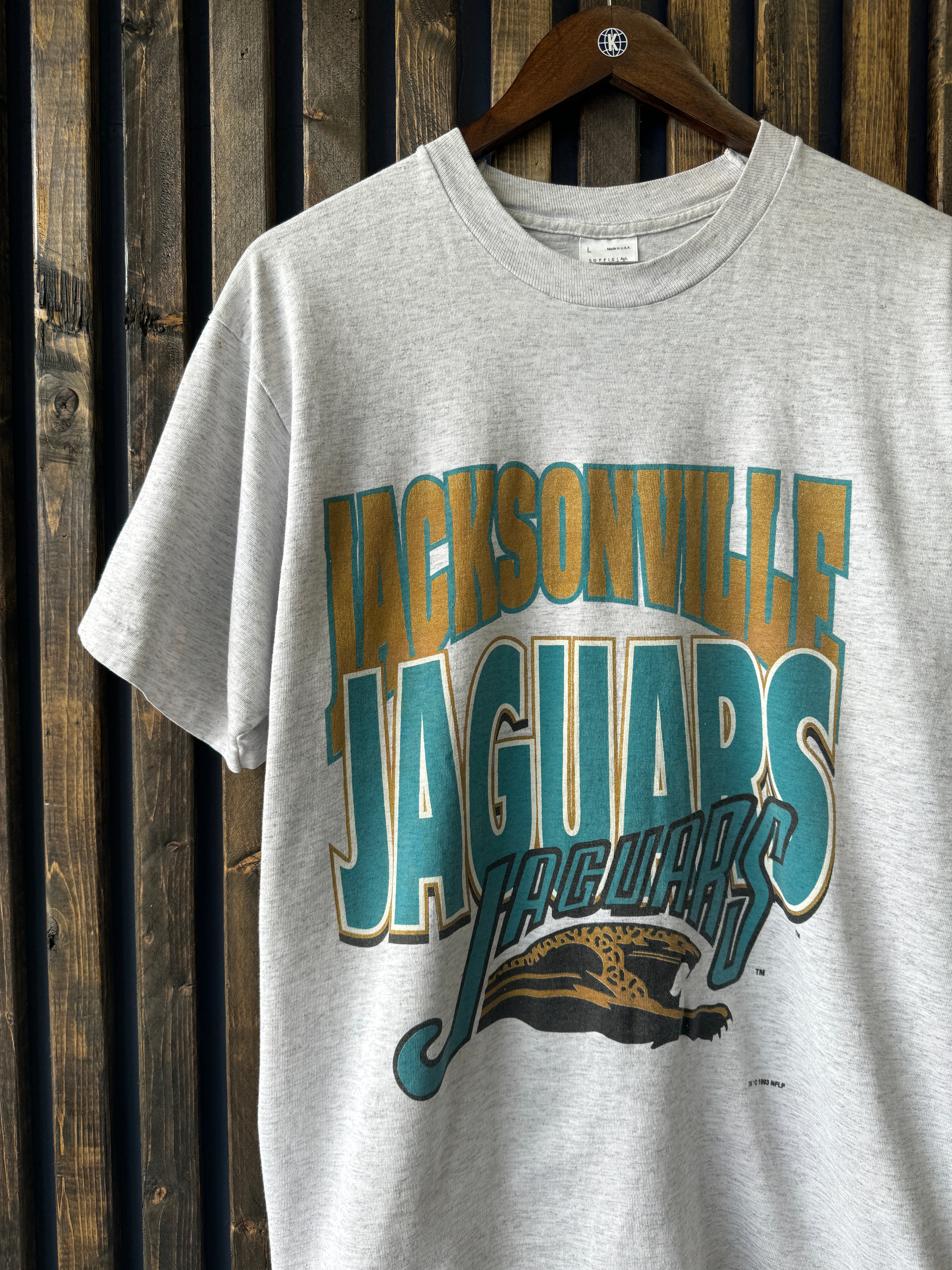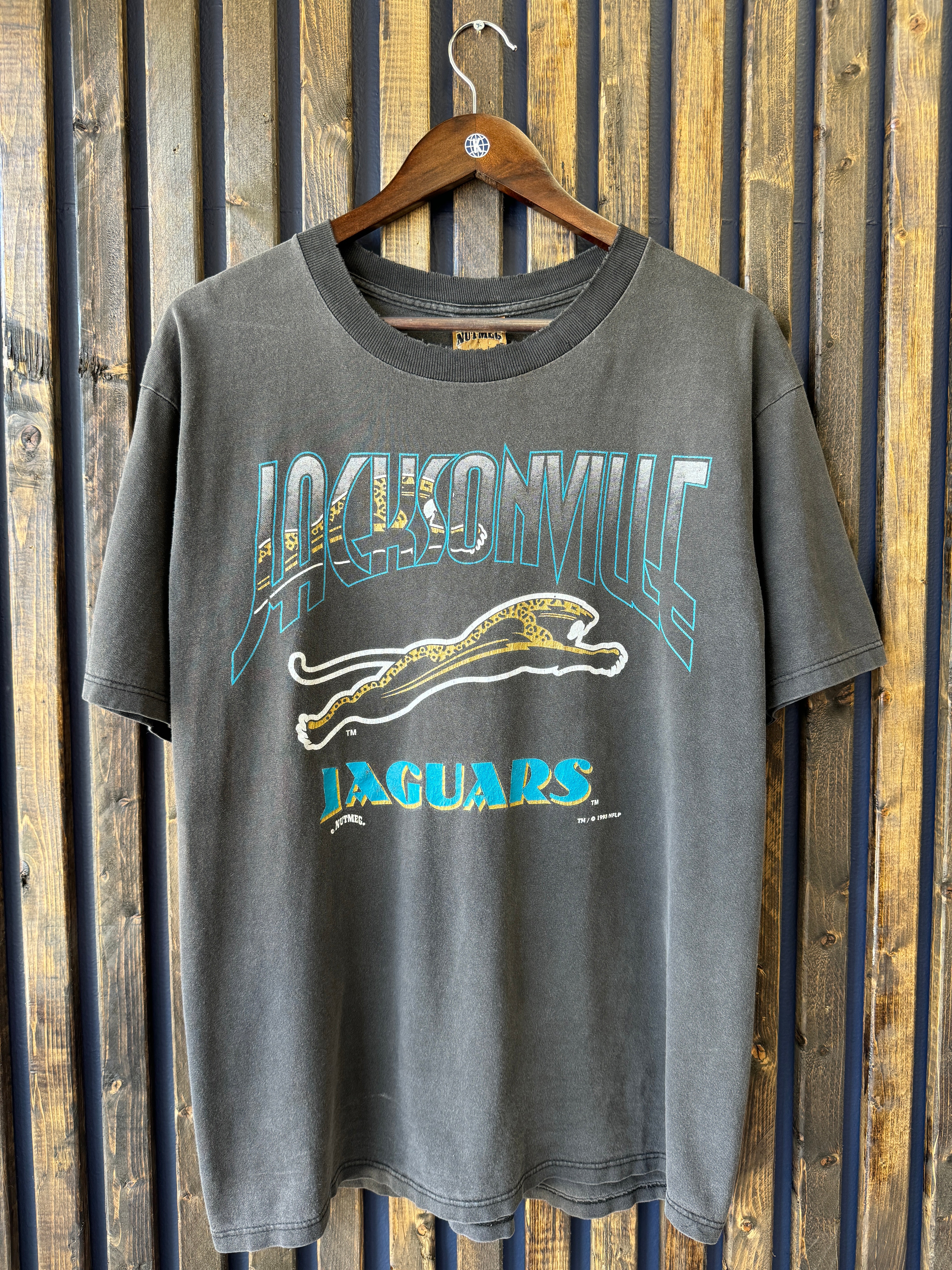 Vintage 1993 Jaguars Banned Logo Spellout Nutmeg Tee Large