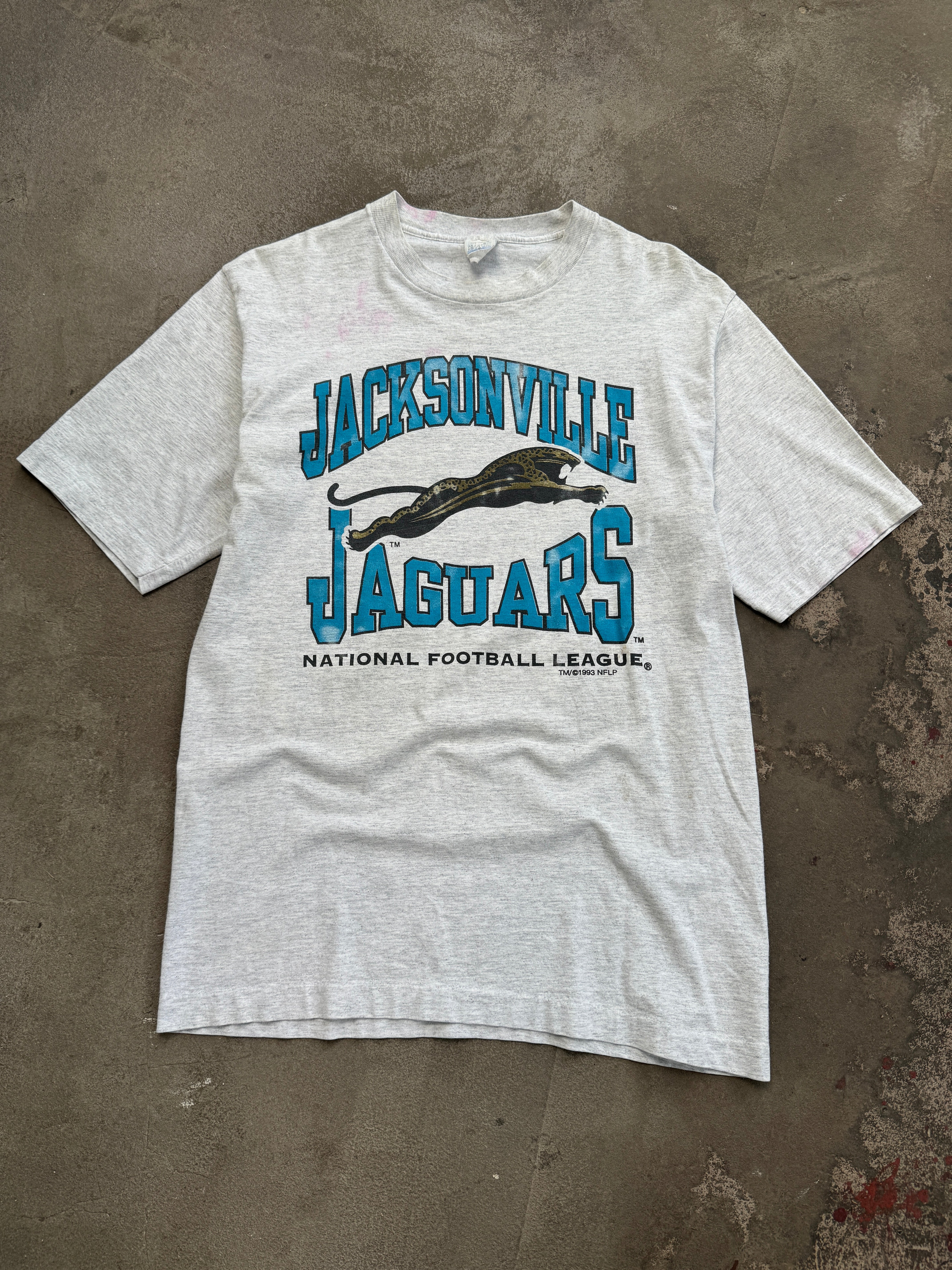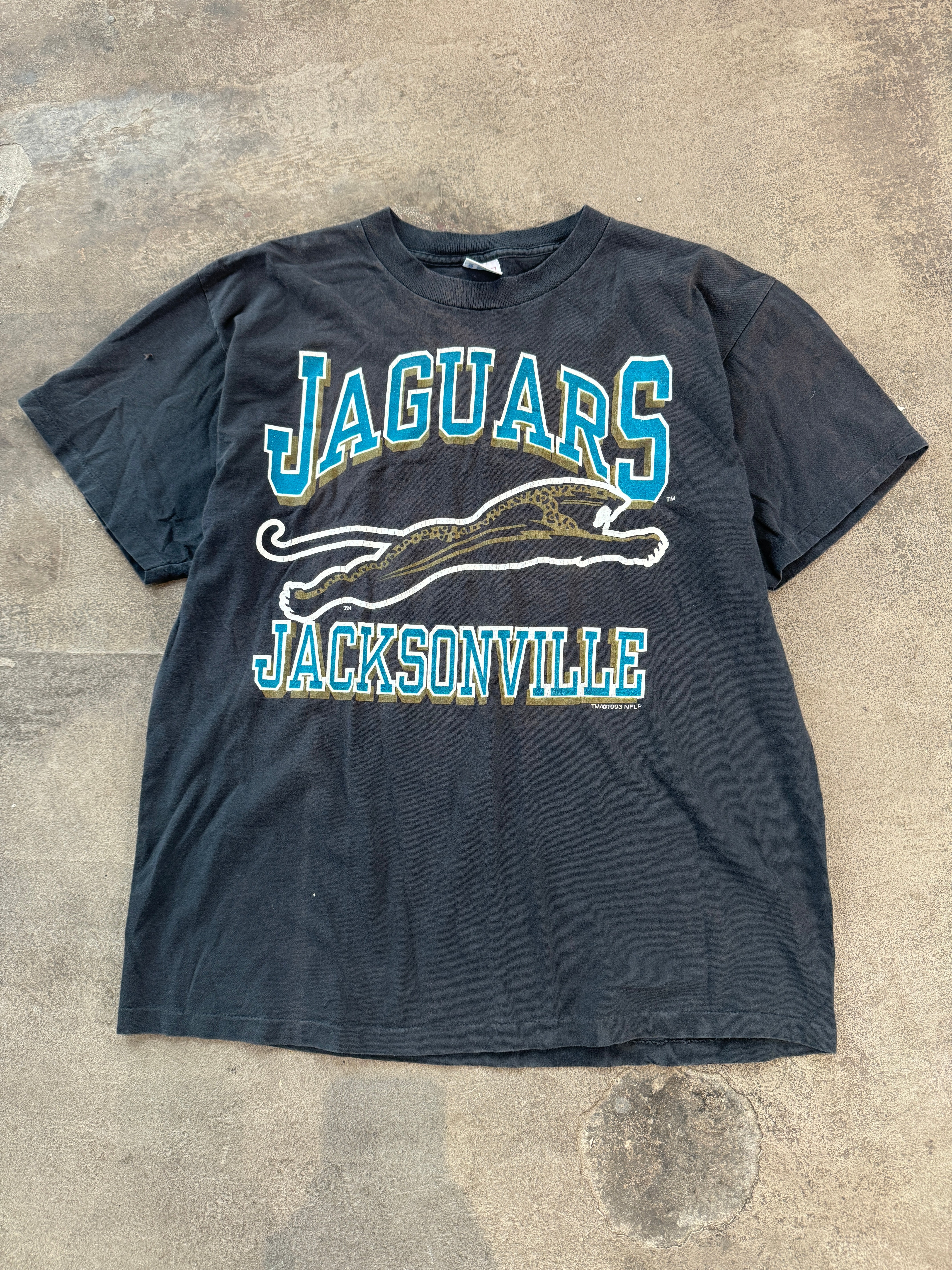 Vintage 1993 Jaguars Banned Logo Spellout Tee Medium
