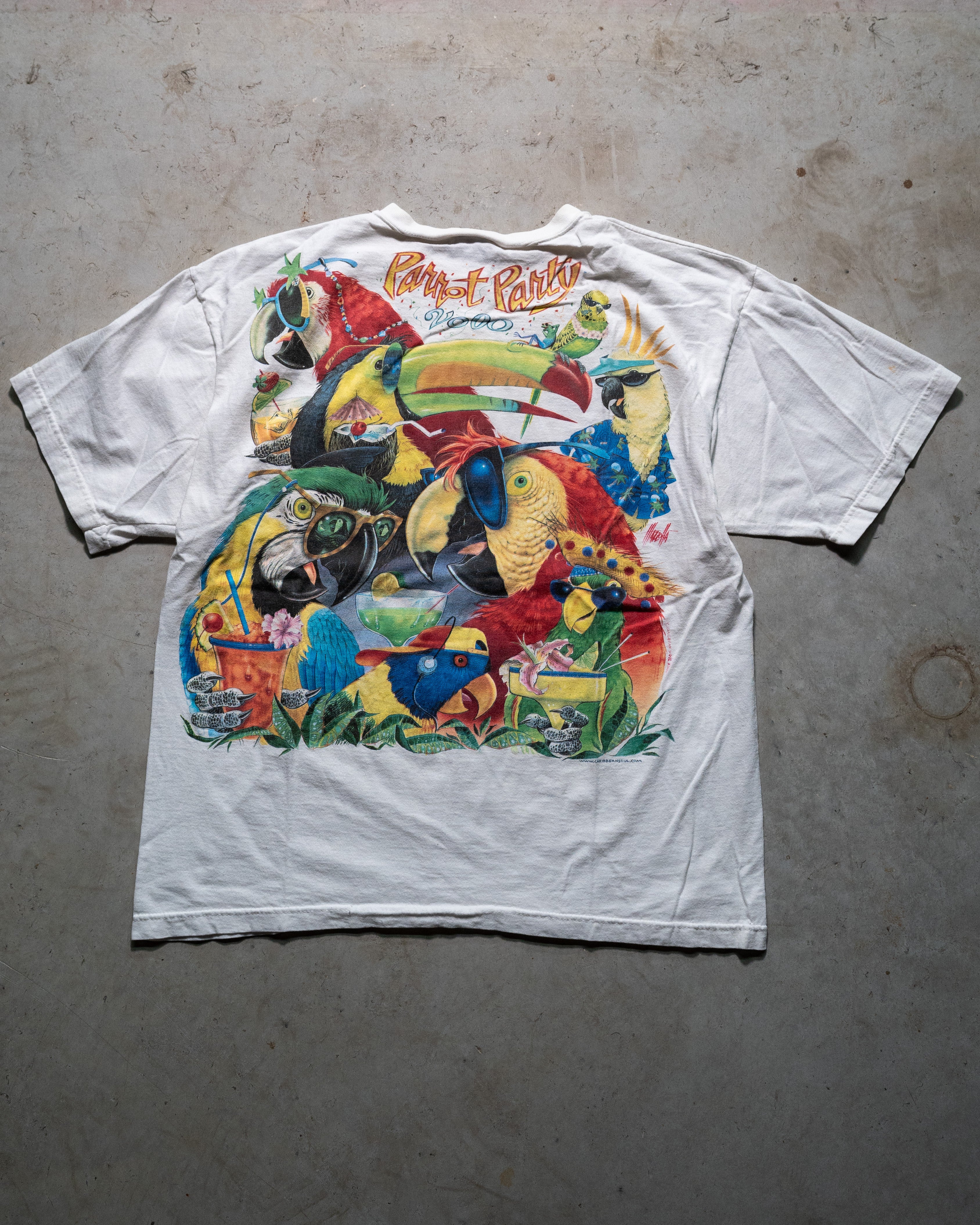 Vintage 2000 Jimmy Buffett Parrot Party Wrap Around Tee
