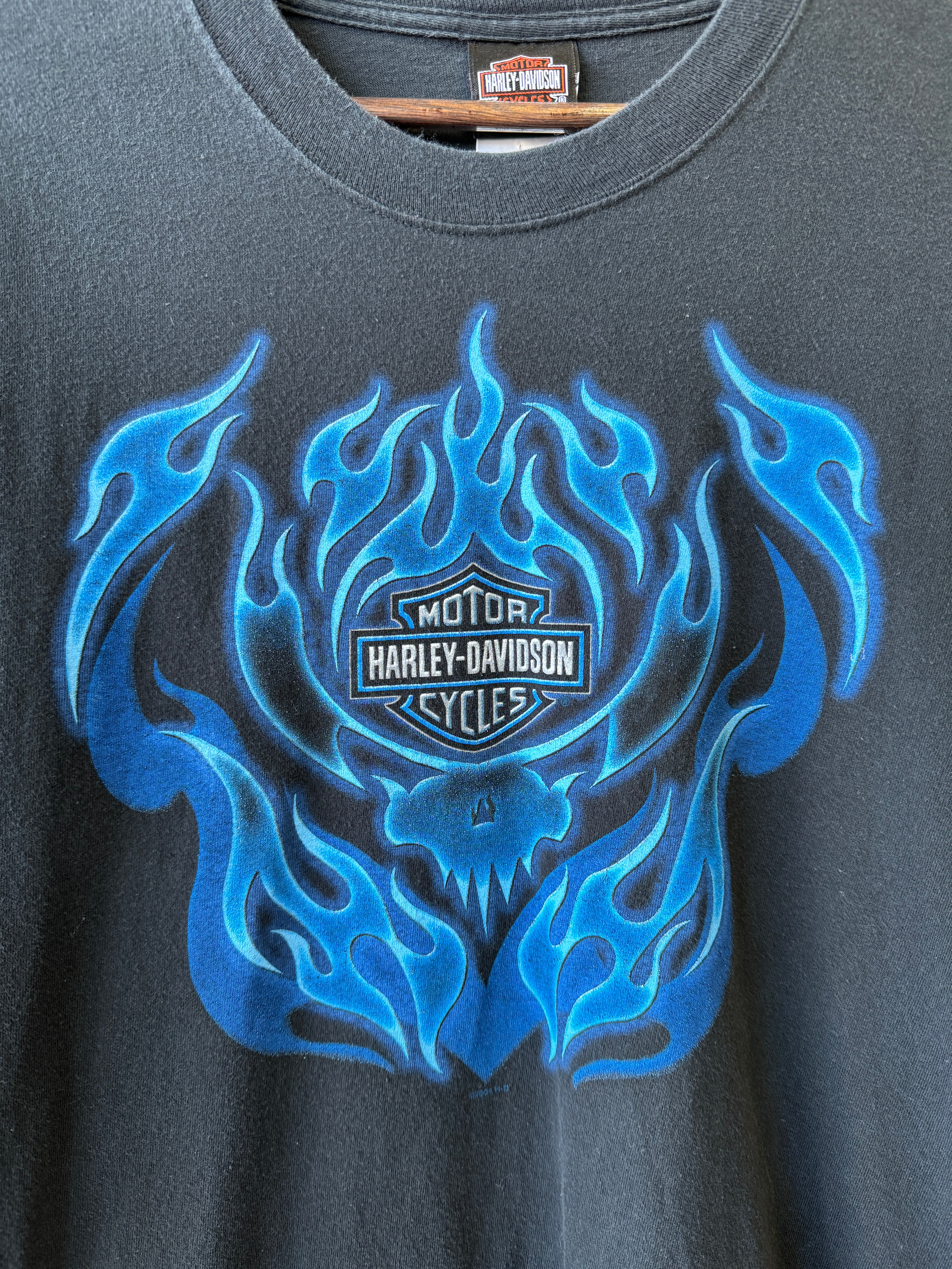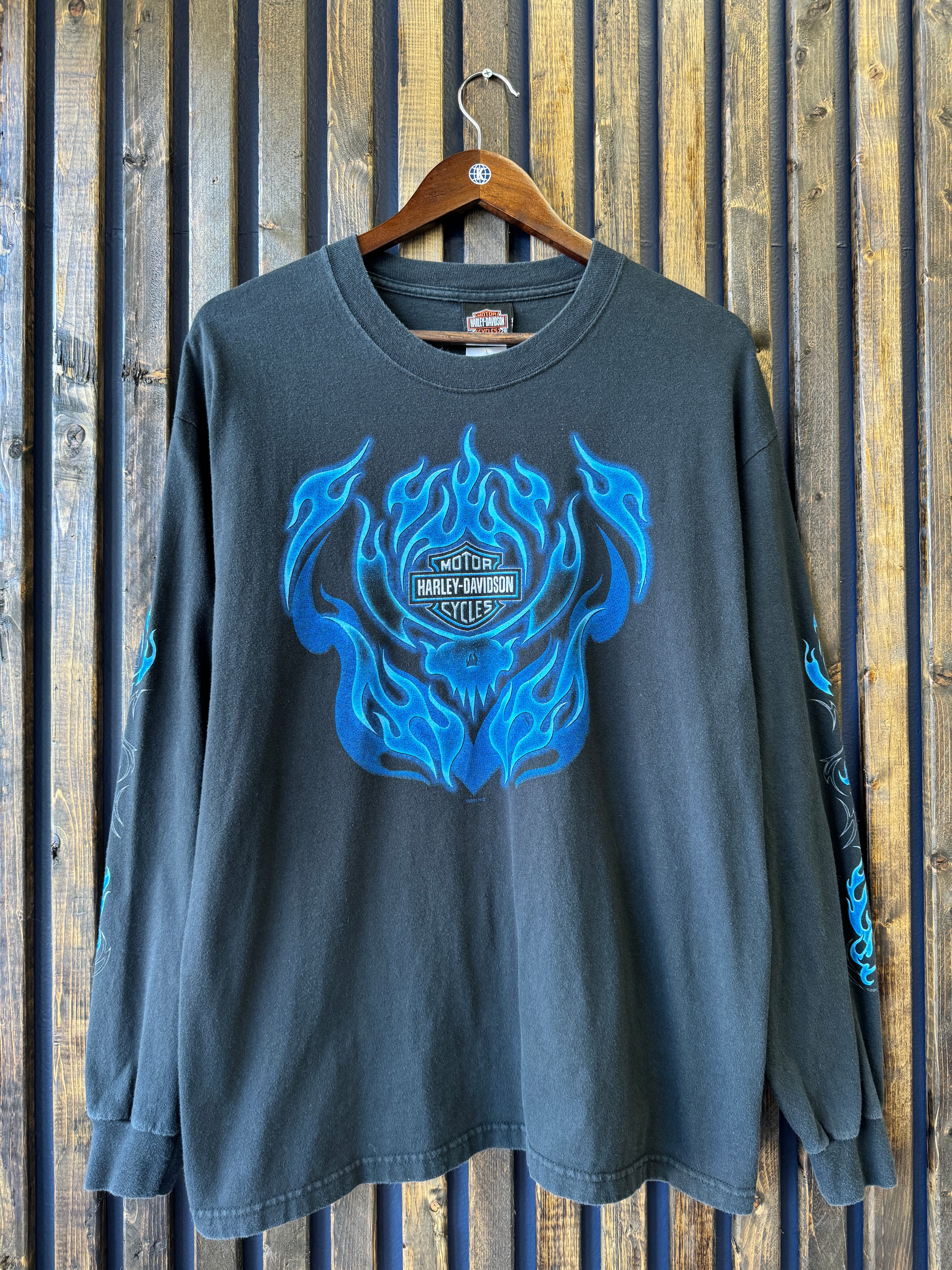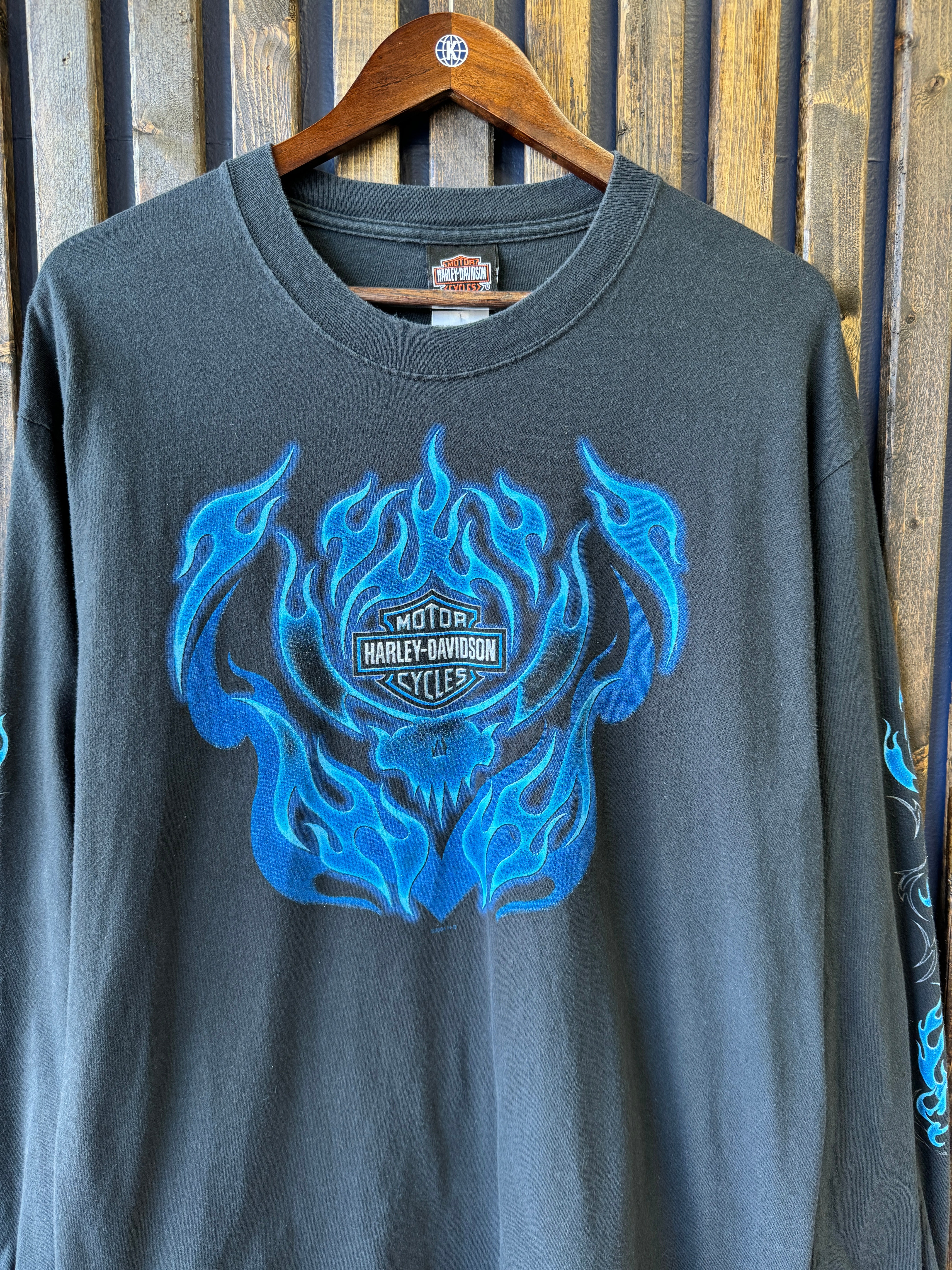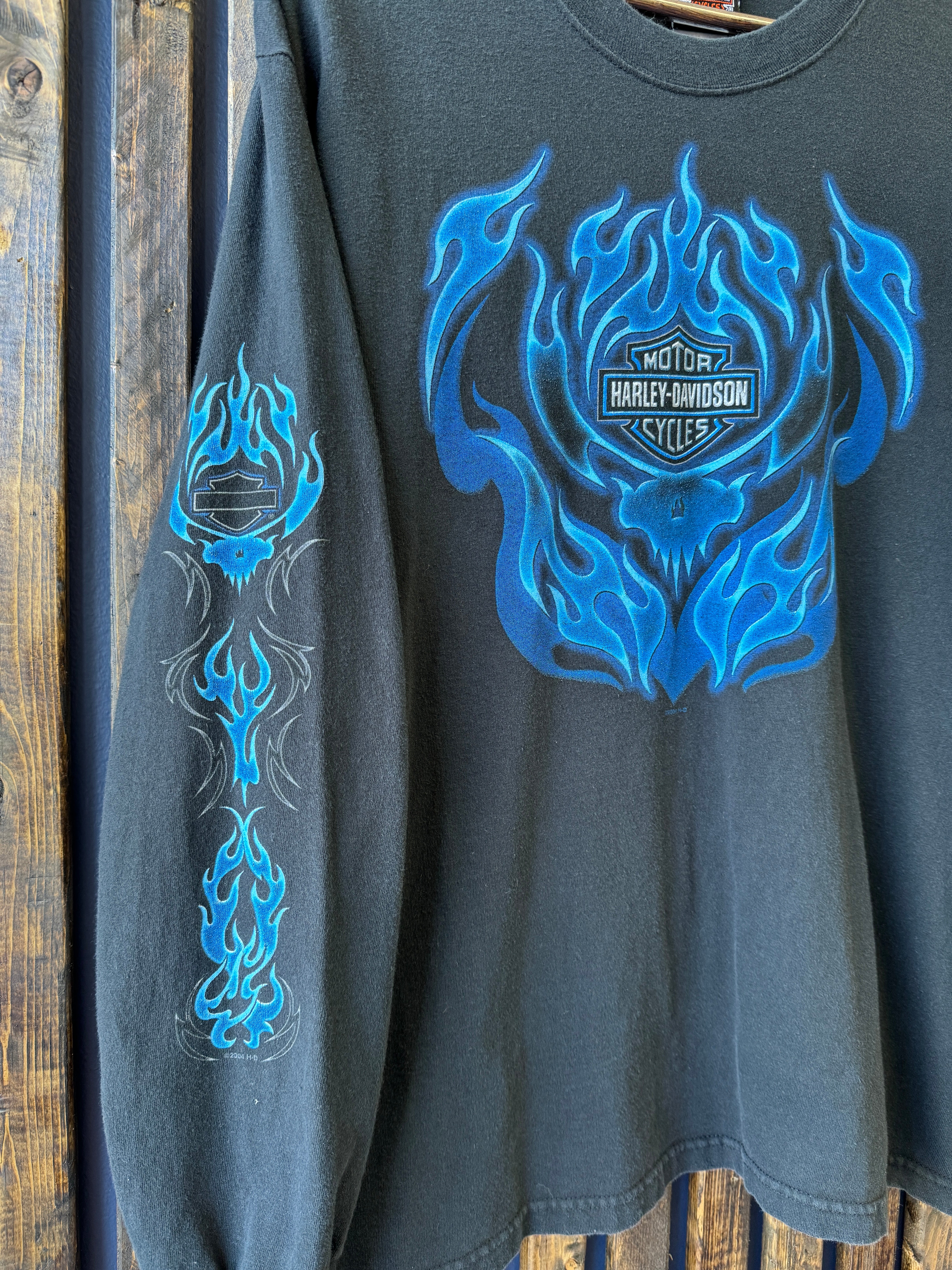 Vintage 2000 Harley Davidson Blue Flames Long Sleeve Large