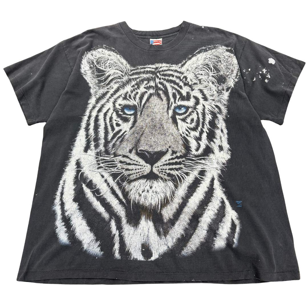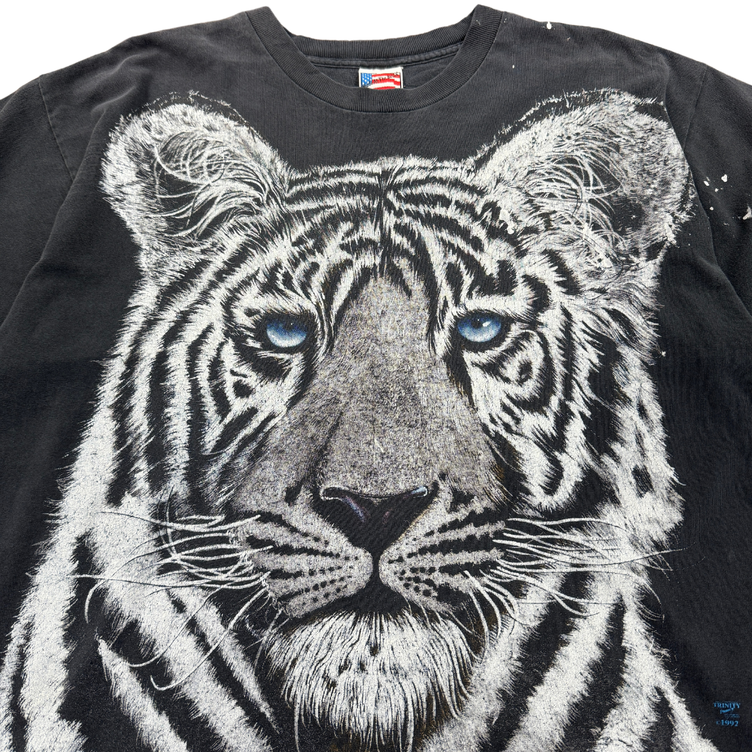 Vintage 90s Liquid Blue White Tiger AOP Tee XL