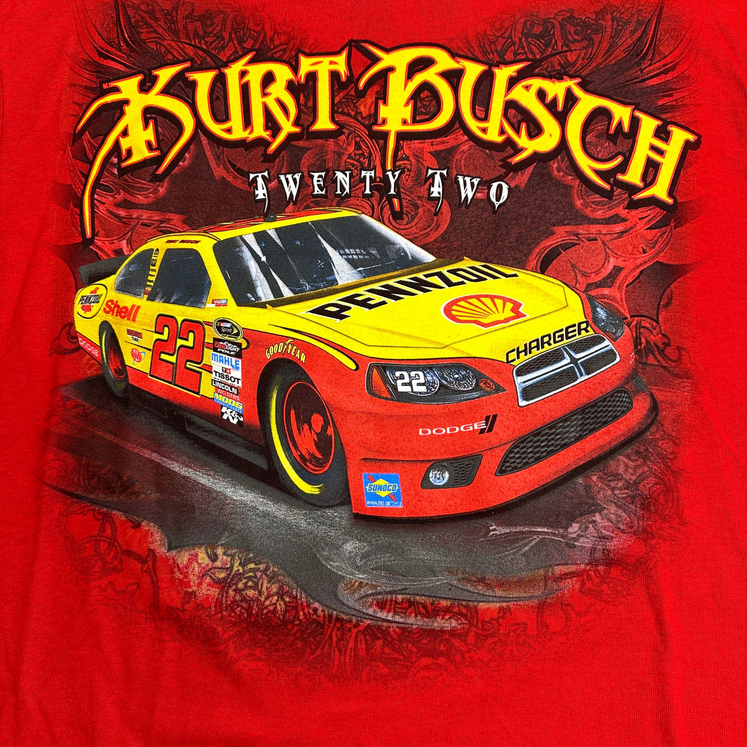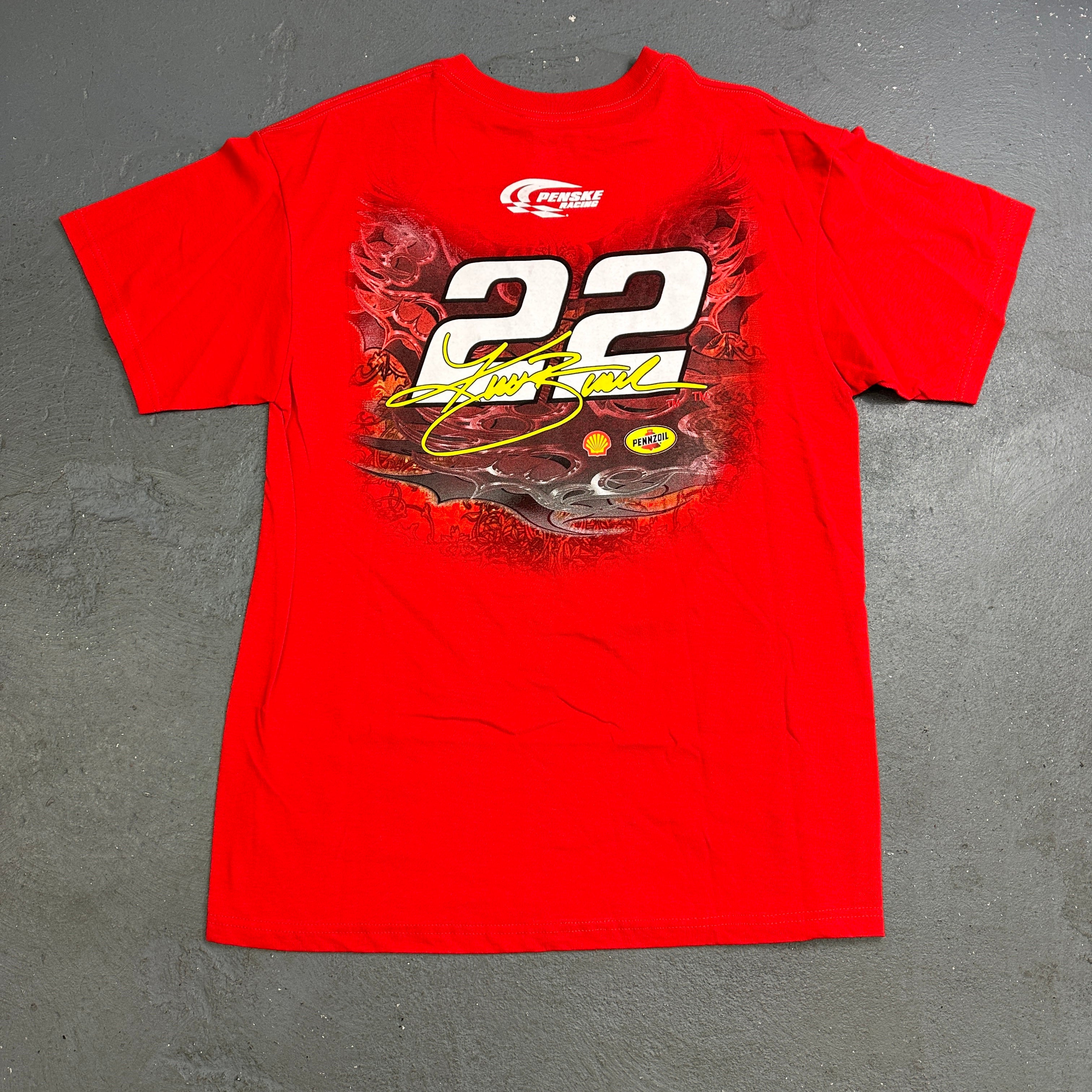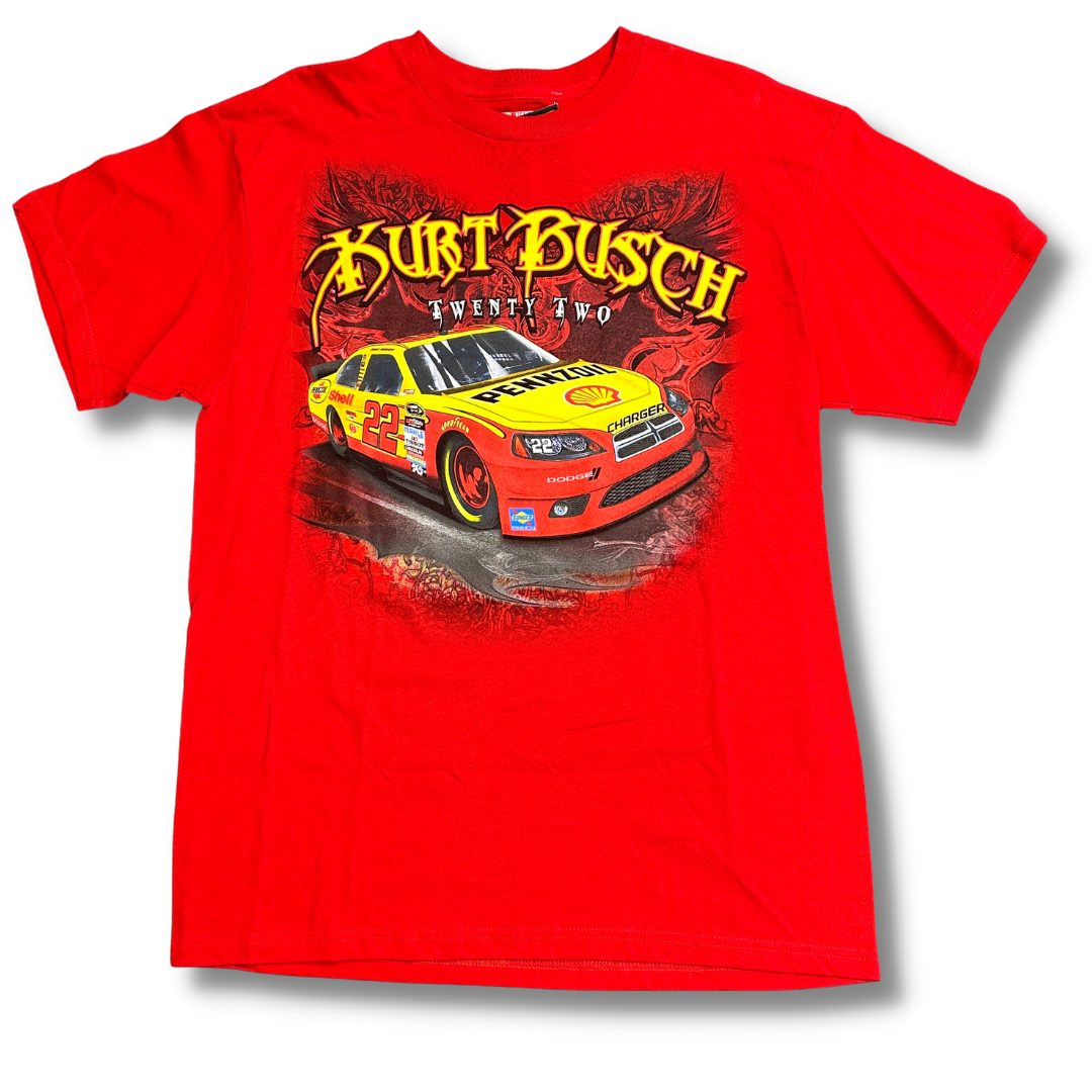Vintage Y2K Kurt Busch #22 Penske Racing Graphic T-Shirt Large